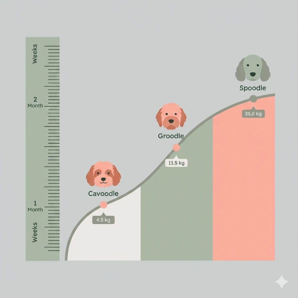 Clear age-and-weight guides for Cavoodles, Groodles, Spoodles and more, all in one place.